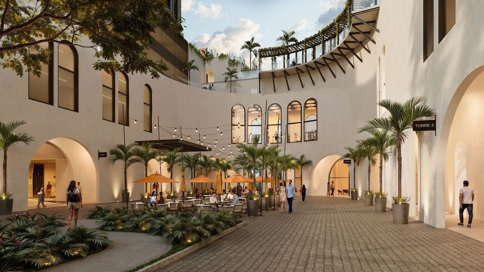 - Plaza central con tiendas, áreas verdes y arquitectura única