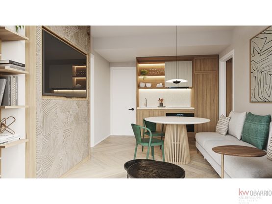 Balcón, cocina abierta, lavandería, techos altos (2.70 m), iluminación natural y diseño atemporal.